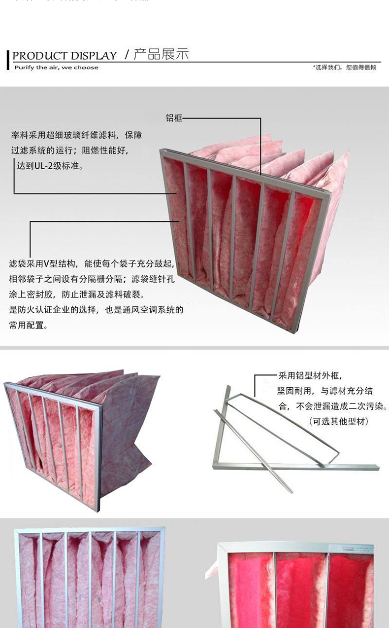 袋型濾網濾材接納入口(或國產)超細玻璃纖維加工,并以特別織法制成,防止新式玻璃纖維資料所能夠對人體形成的不適