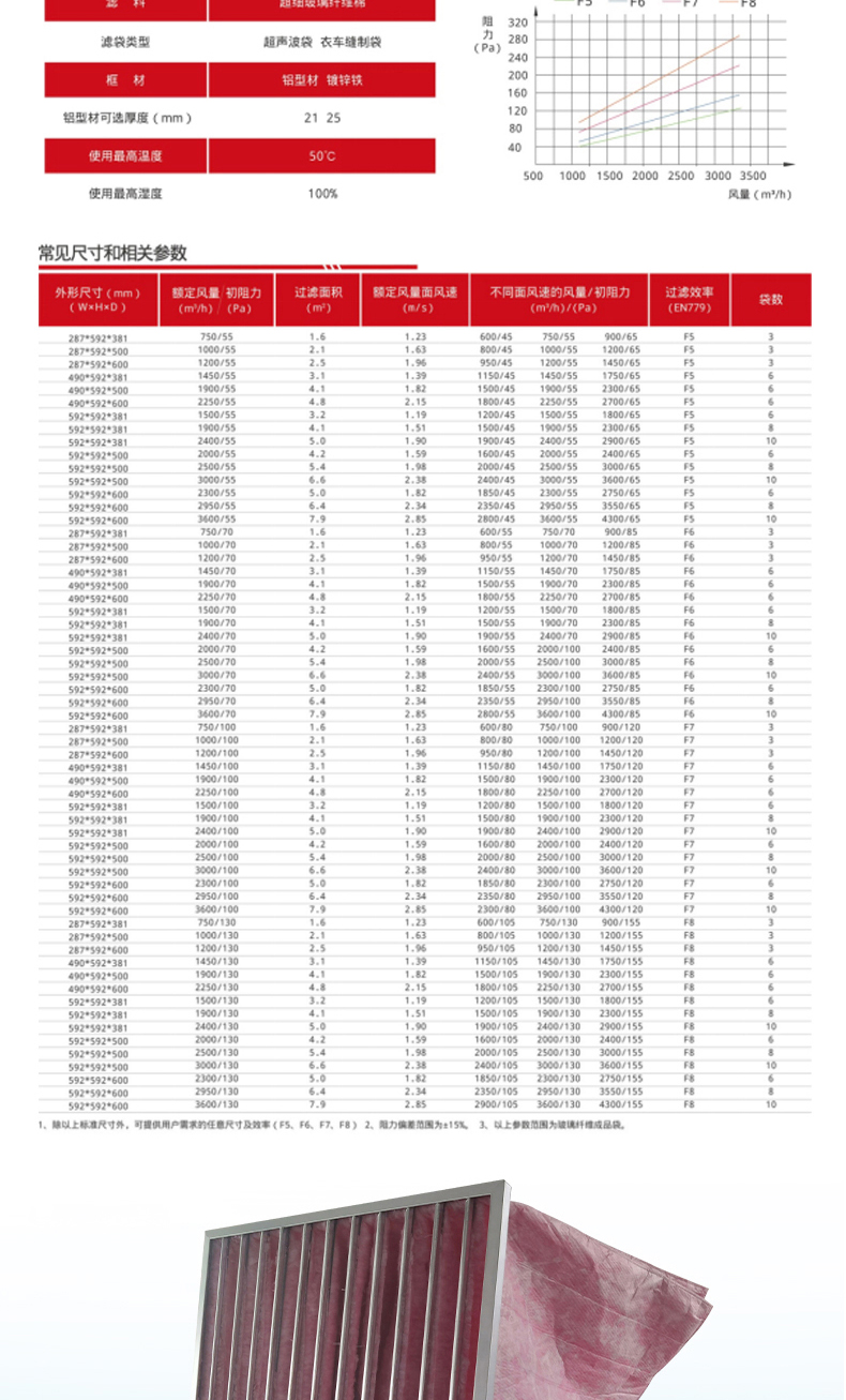 廠家直供 中效袋式過濾器 袋式過濾網 F5 F6 F7 F8 F9 氛圍過濾器 除塵濾袋