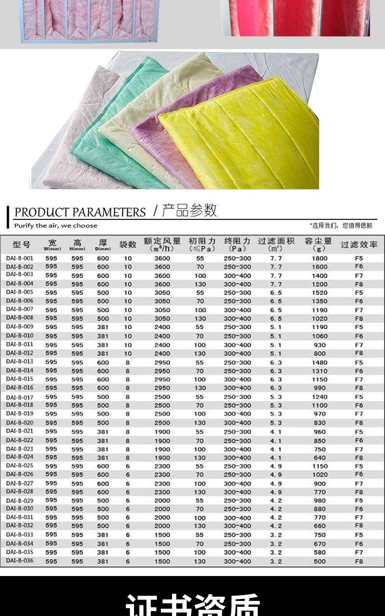 廠供應 杭州照闊危害法寶美好公司的 中效袋式凈化器 F5 F6 F7 F8 F9保障 文化氛圍凈化器 除塵處理袋 靜電放電棉袋式凈化器